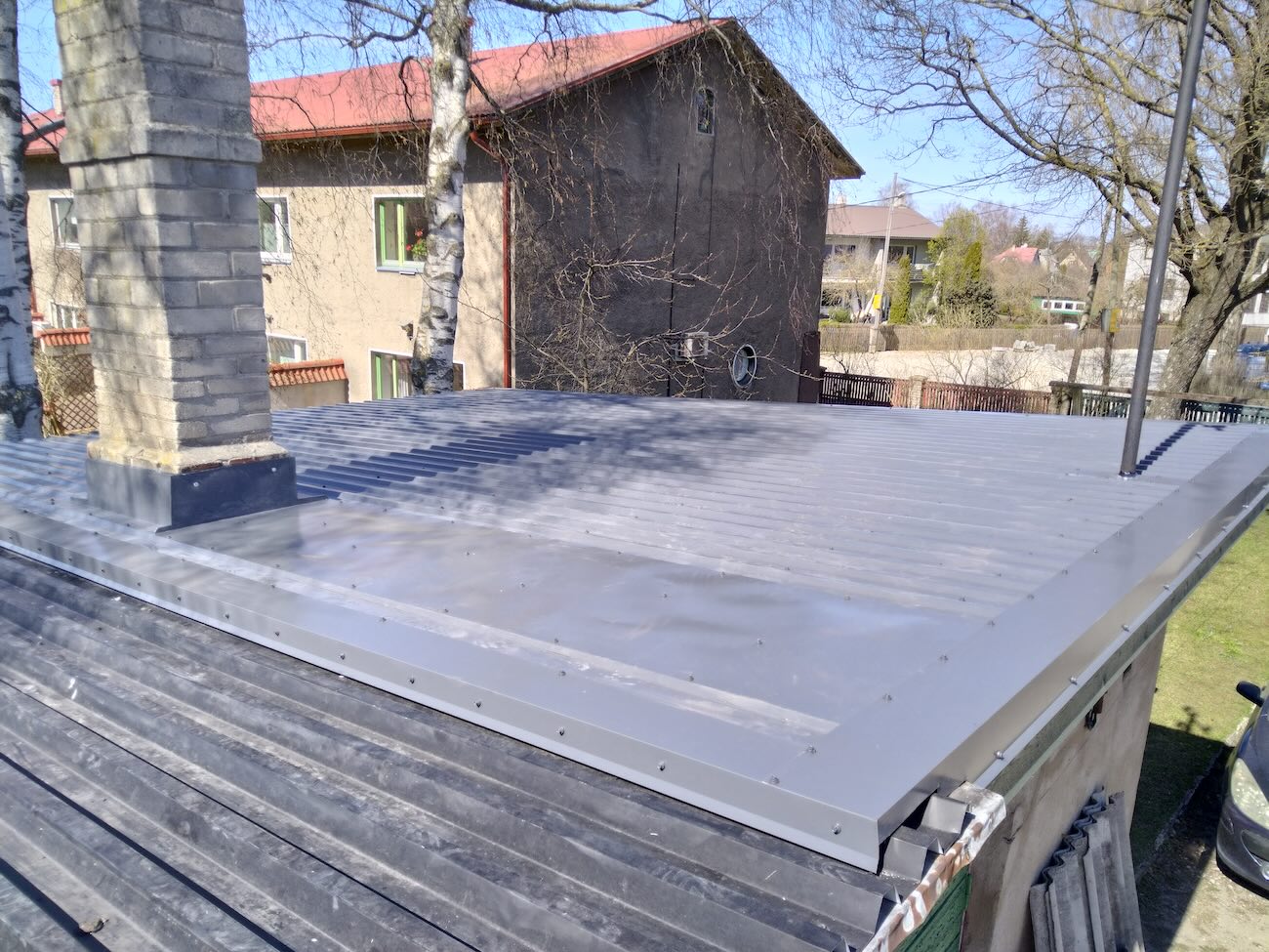 Katuse renoveerimine Tallinn, Pöialpoisi tänav Mis ehitustöid tehti? Katus on viimistletud trapets profiilplekiga. Plekk toonis RR23 Pural. Vana katuse täielik lammutamine Uue kandevkonstruktsiooni ehitus Aluskatte, tuulutusliistu ja roovituse paigaldus Tuulekastide ehitus Trapets profiilpleki paigaldus koos lisaplekkidega Vajad uut katust või vana renoveerimist? Saada päring ja lisa võimalusel pildid ja joonised. Vastame esimesel võimalusel ja lepime edasised sammud kokku. Küsi pakkumist